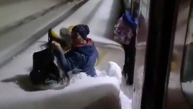 Од вагон право во снег до гуша: Како виулица завеа железничка станица на југот на Русија (ВИДЕО)